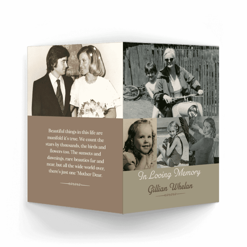 “A Personalised Memorial Card is a popular touching keepsake to remember and pay tribute to a lost loved one. They are a great memory to give to your friends and family and for people who were unable to make the ceremony.”