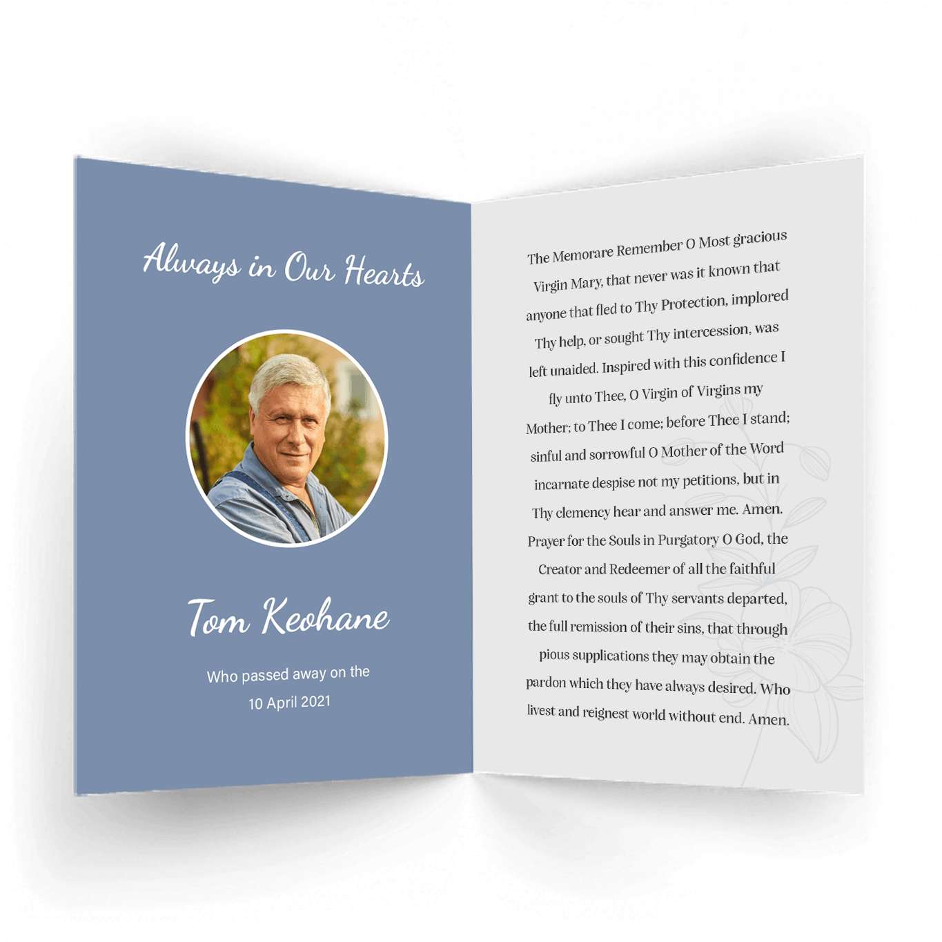 “A Personalised Memorial Card is a popular touching keepsake to remember and pay tribute to a lost loved one. They are a great memory to give to your friends and family and for people who were unable to make the ceremony.”
