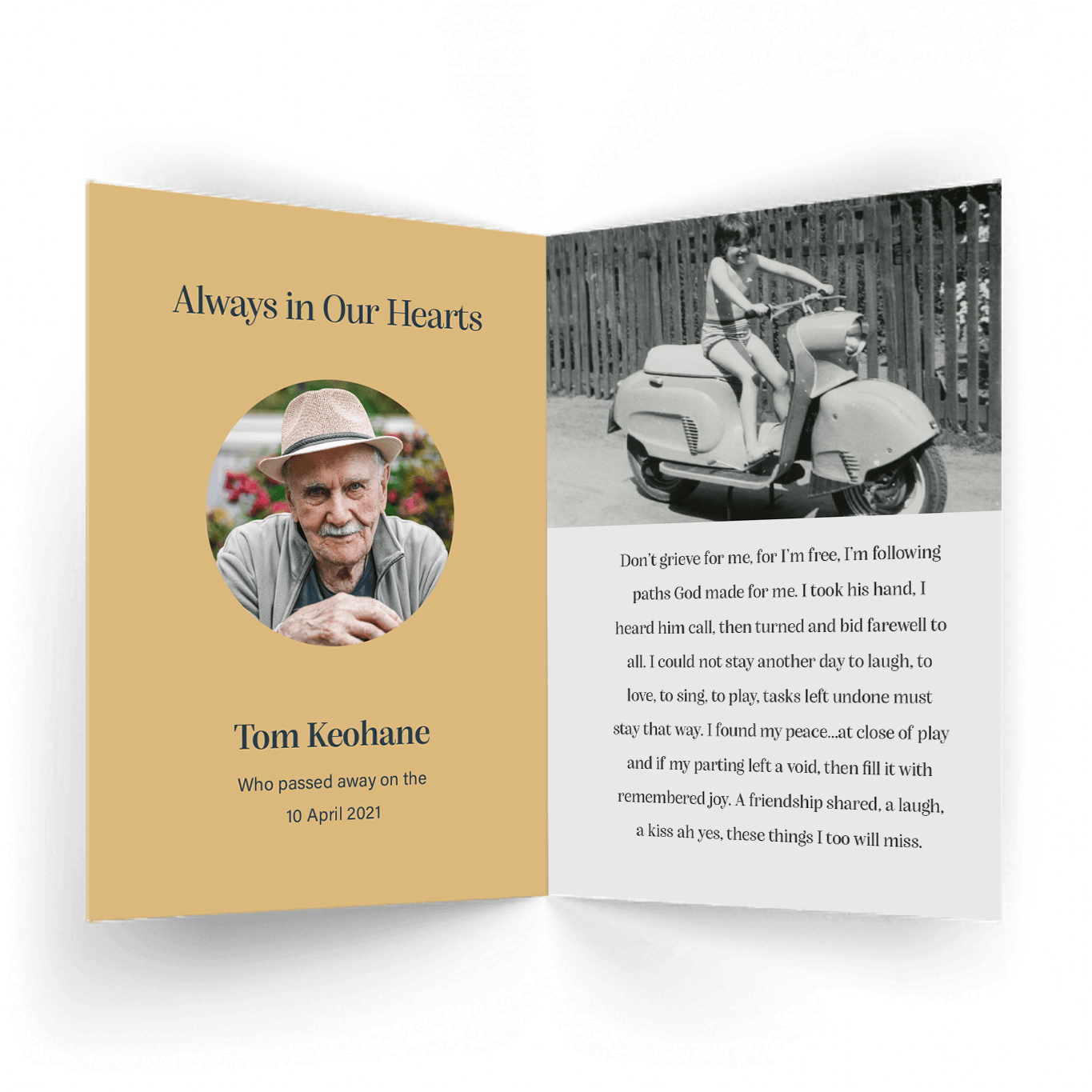 “A Personalised Memorial Card is a popular touching keepsake to remember and pay tribute to a lost loved one. They are a great memory to give to your friends and family and for people who were unable to make the ceremony.”