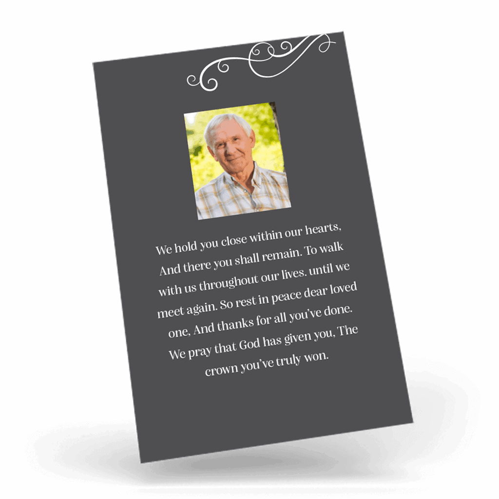 “A Personalised Memorial Wallet Card is a popular touching keepsake to remember and pay tribute to a lost loved one. They are a great memory to give to your friends and family and for people who were unable to make the ceremony.”