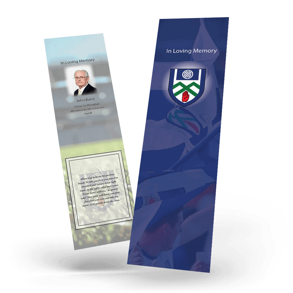 • Our memorial bookmarks are finished to size 55mm x 210mm (Standard Size.)