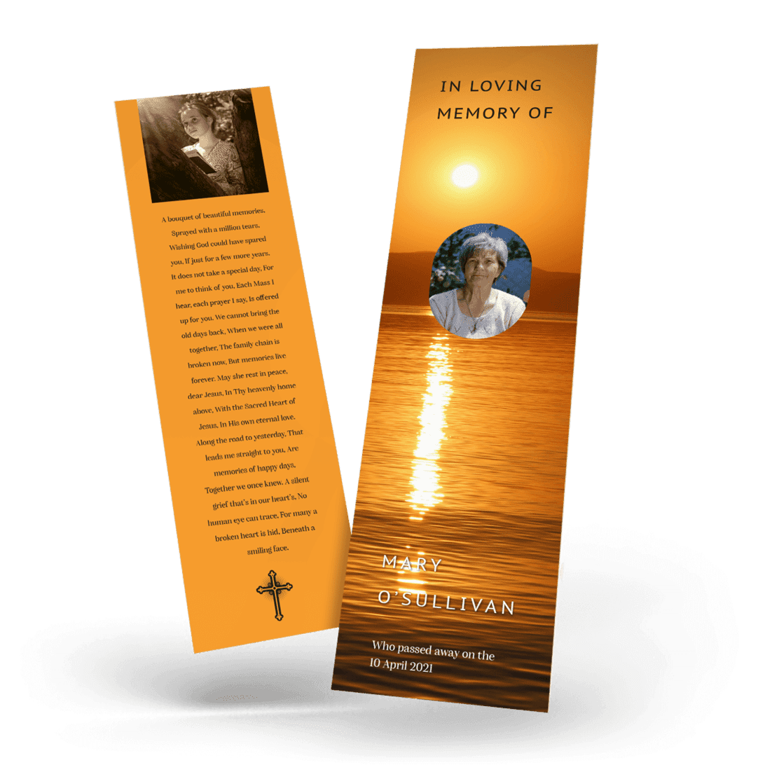 “A Personalised Memorial Bookmark is a popular touching keepsake to remember and pay tribute to a lost loved one. They are a great memory to give to your friends and family and for people who were unable to make the ceremony.”