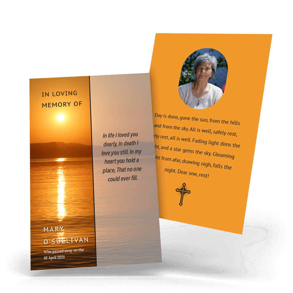 - Our memorial wallet cards are finished to size 55mm x 85mm Tall.