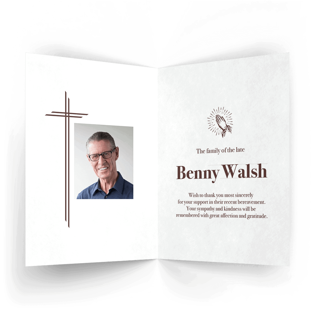 “A Personalised Memorial Acknowledgement Card or Thank you card is a touching way to express your gratitude and to acknowledge the importance of the help and support you received after your loss.”