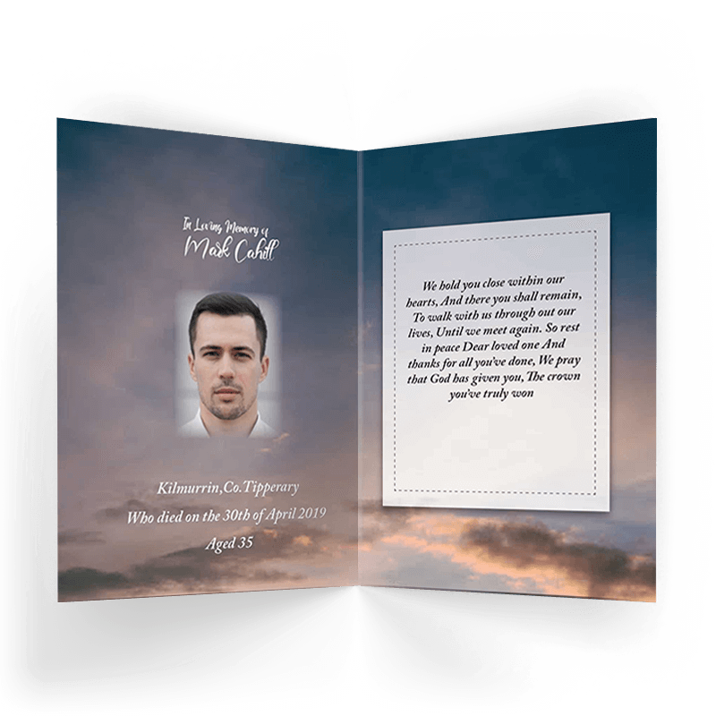“A Personalised Memorial Card is a popular touching keepsake to remember and pay tribute to a lost loved one. They are a great memory to give to your friends and family and for people who were unable to make the ceremony.”