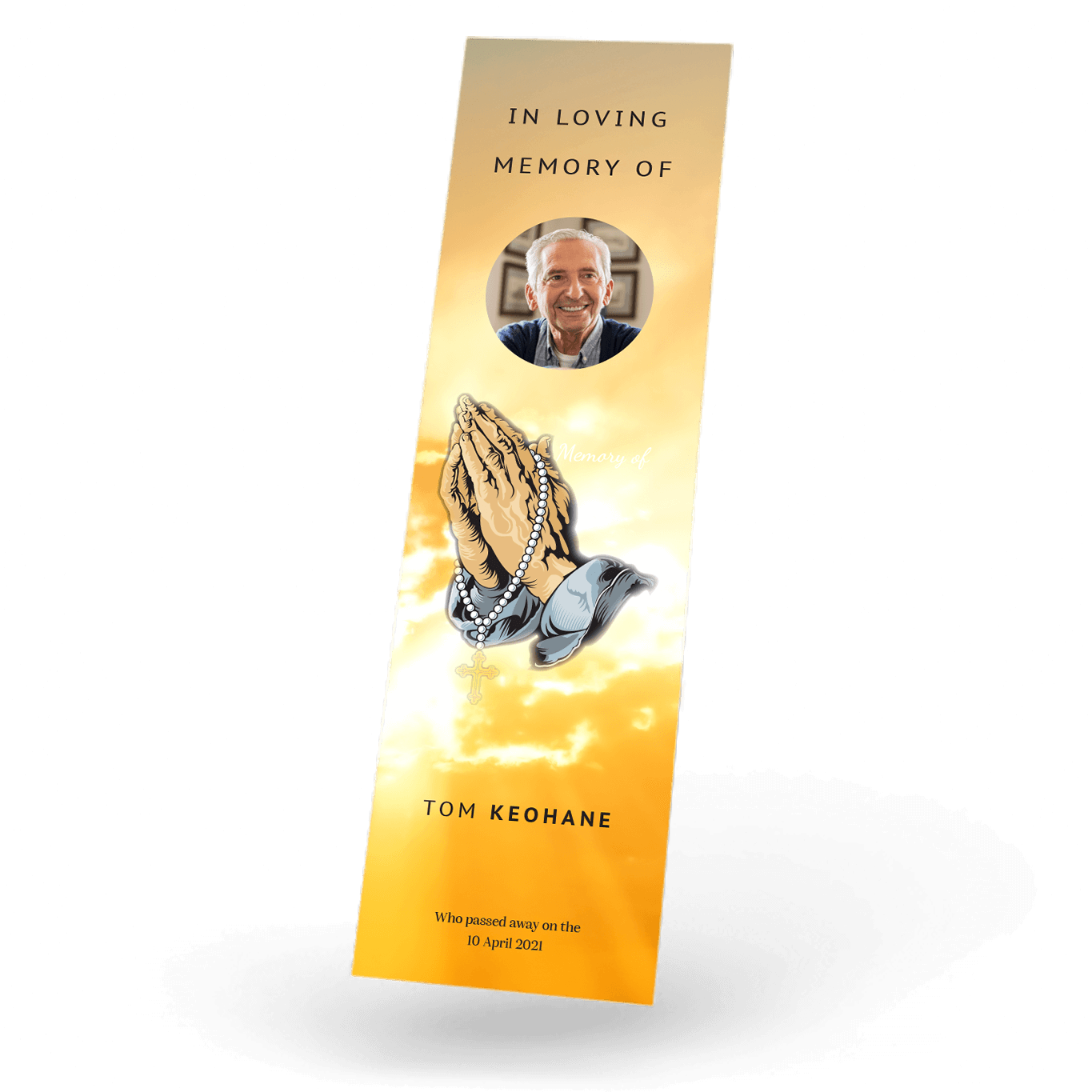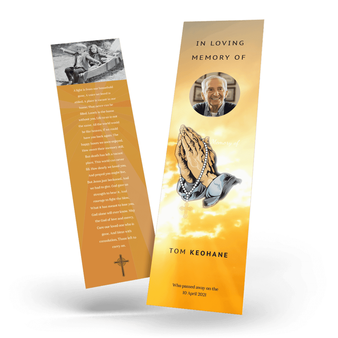 “A Personalised Memorial Bookmark is a popular touching keepsake to remember and pay tribute to a lost loved one. They are a great memory to give to your friends and family and for people who were unable to make the ceremony.”