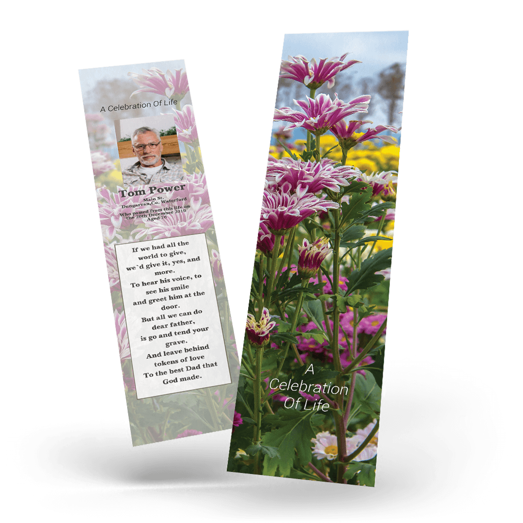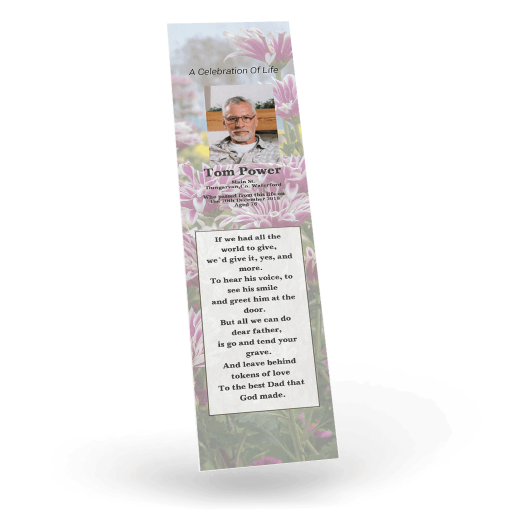 “A Personalised Memorial Bookmark is a popular touching keepsake to remember and pay tribute to a lost loved one. They are a great memory to give to your friends and family and for people who were unable to make the ceremony.”