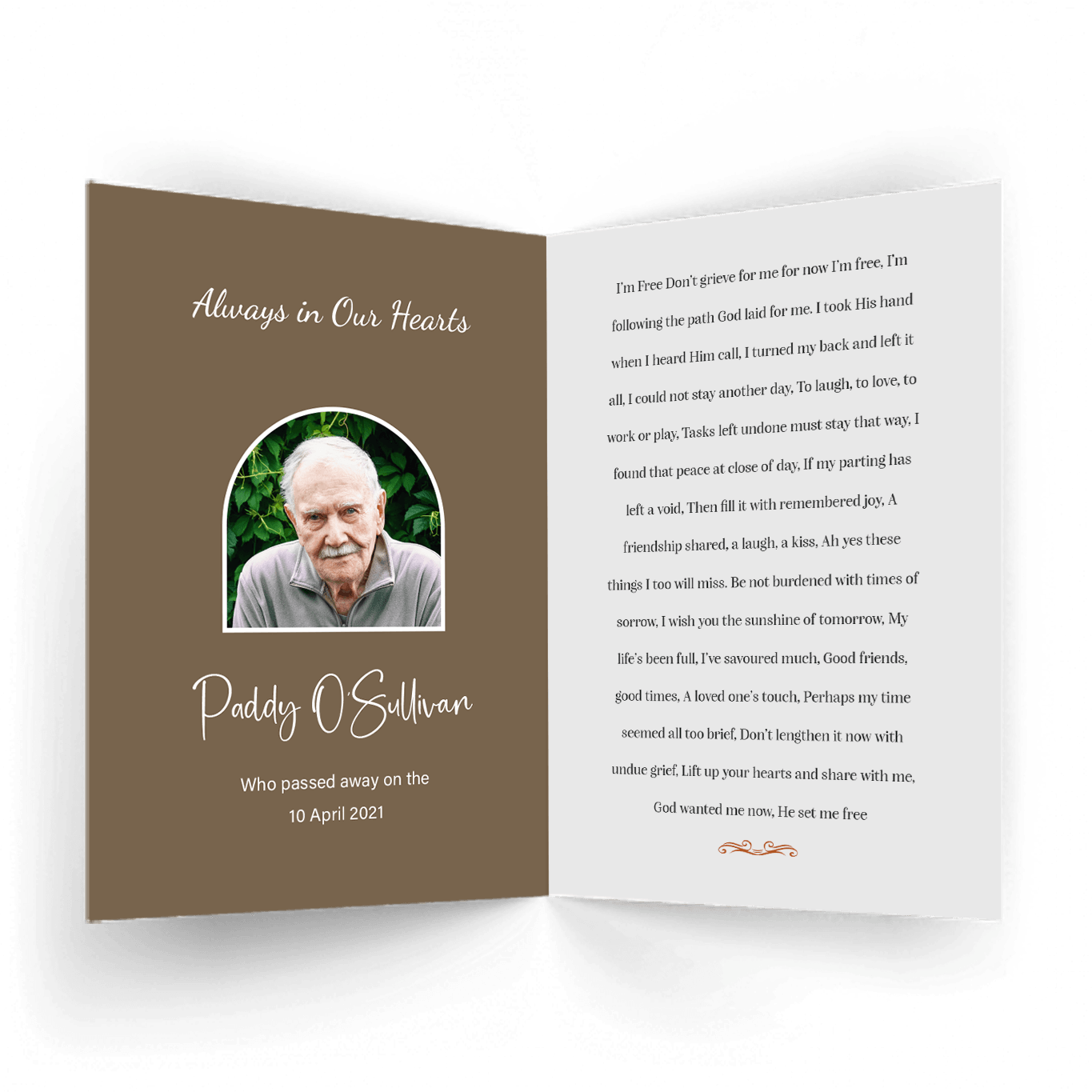 “A Personalised Memorial Card is a popular touching keepsake to remember and pay tribute to a lost loved one. They are a great memory to give to your friends and family and for people who were unable to make the ceremony.”