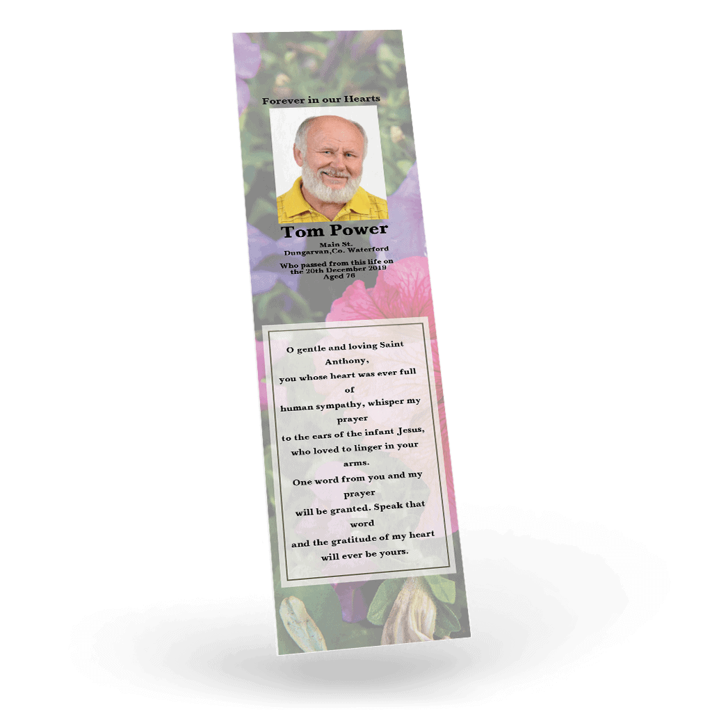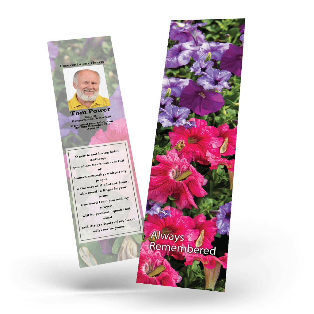 “A Personalised Memorial Bookmark is a popular touching keepsake to remember and pay tribute to a lost loved one. They are a great memory to give to your friends and family and for people who were unable to make the ceremony.”