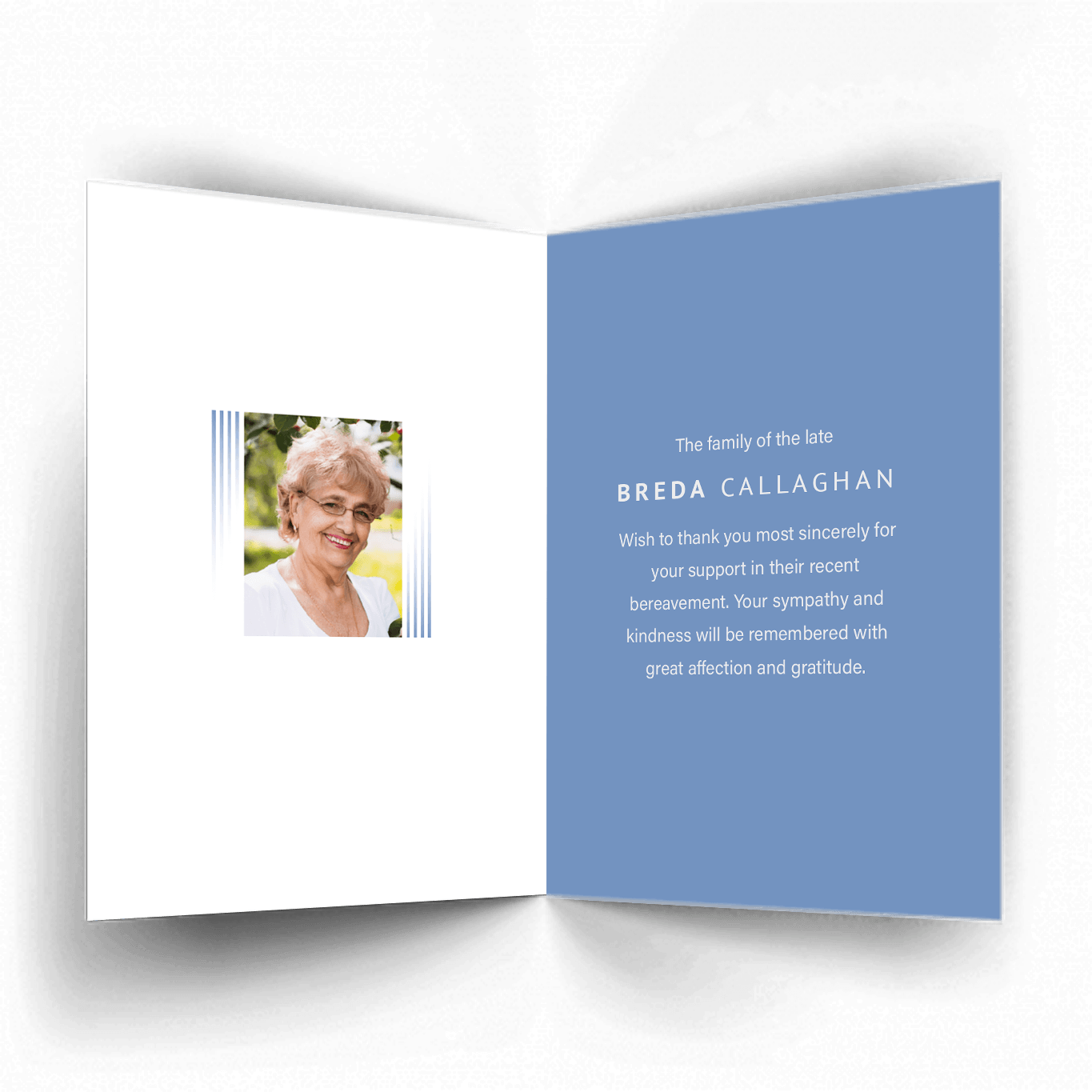 “A Personalised Memorial Acknowledgement Card or Thank you card is a touching way to express your gratitude and to acknowledge the importance of the help and support you received after your loss.”