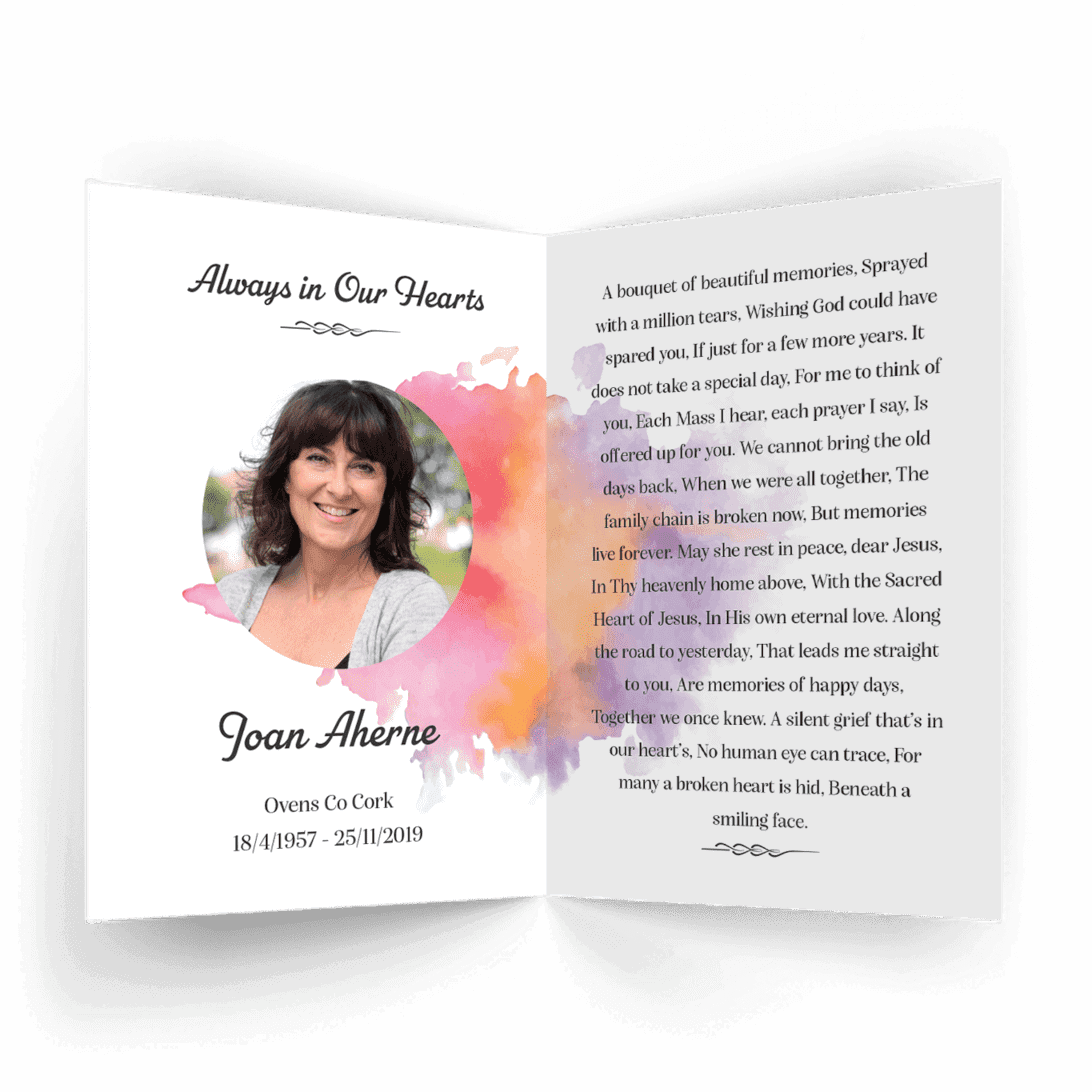 “A Personalised Memorial Card is a popular touching keepsake to remember and pay tribute to a lost loved one. They are a great memory to give to your friends and family and for people who were unable to make the ceremony.”