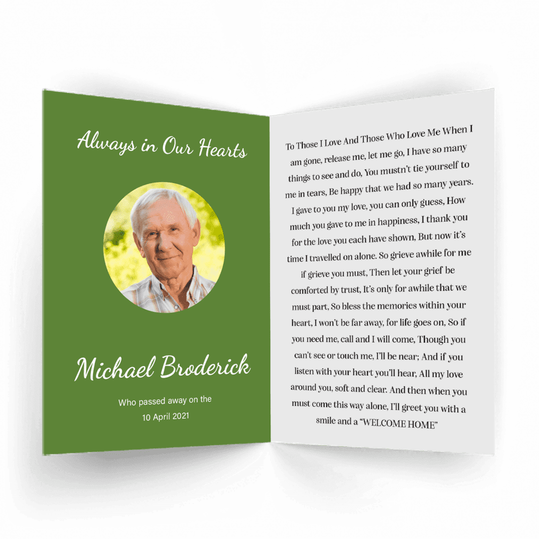 - Our memorial cards are finished to size 75mm x 105mm when folded.