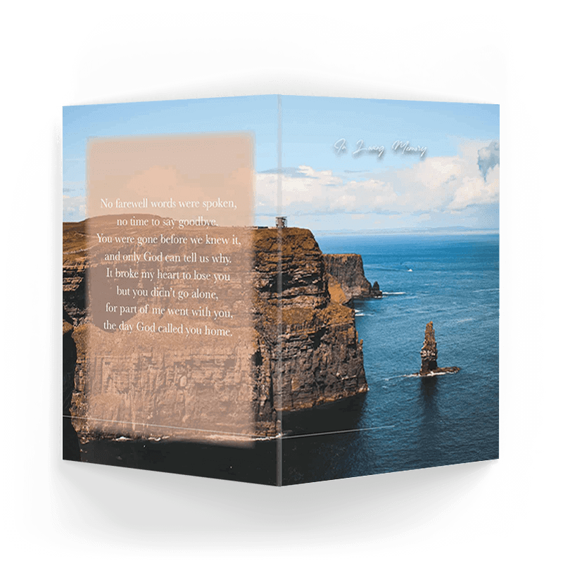 “A Personalised Memorial Card is a popular touching keepsake to remember and pay tribute to a lost loved one. They are a great memory to give to your friends and family and for people who were unable to make the ceremony.”