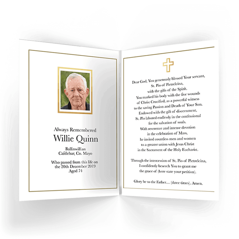 “A Personalised Memorial Card is a popular touching keepsake to remember and pay tribute to a lost loved one. They are a great memory to give to your friends and family and for people who were unable to make the ceremony.”