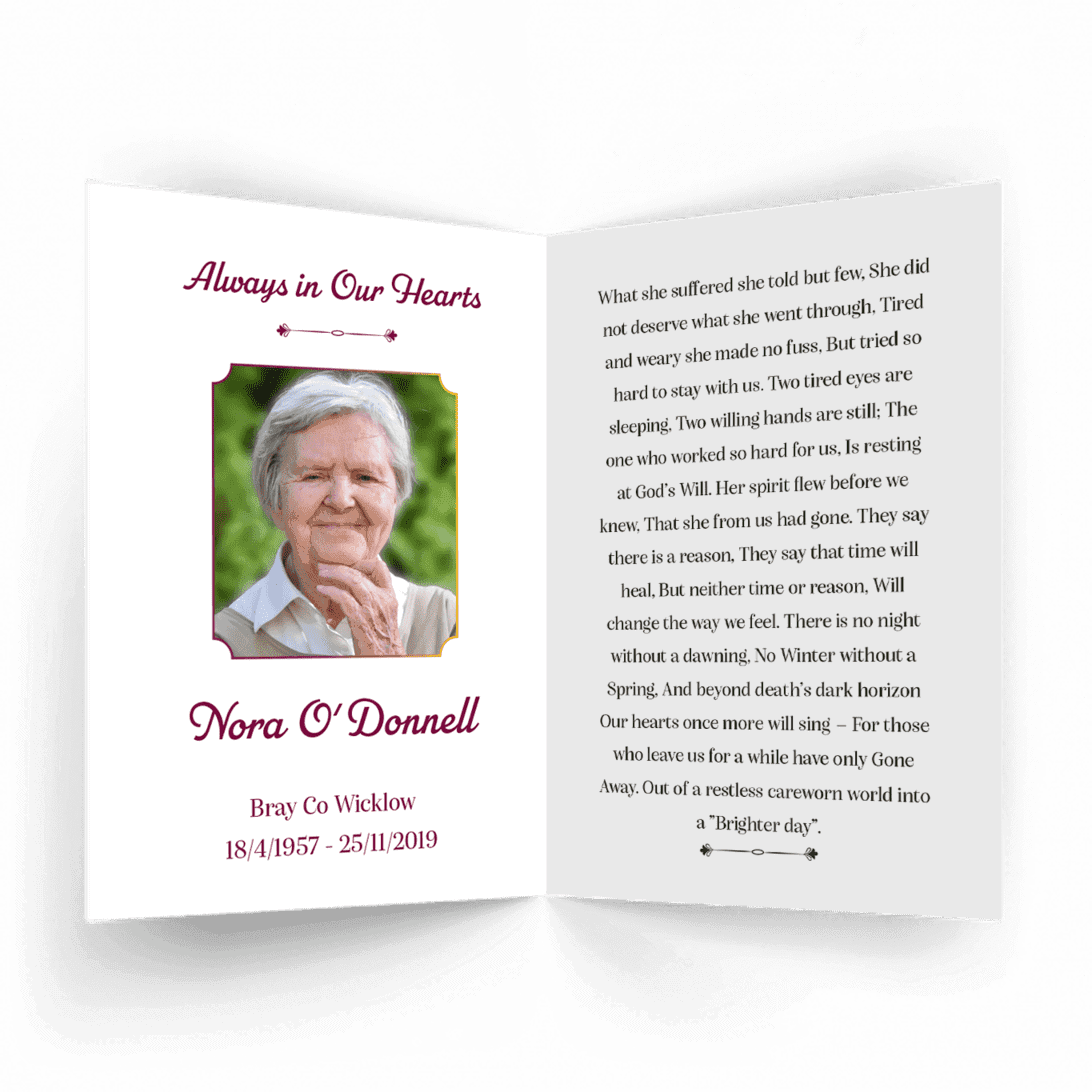 “A Personalised Memorial Card is a popular touching keepsake to remember and pay tribute to a lost loved one. They are a great memory to give to your friends and family and for people who were unable to make the ceremony.”
