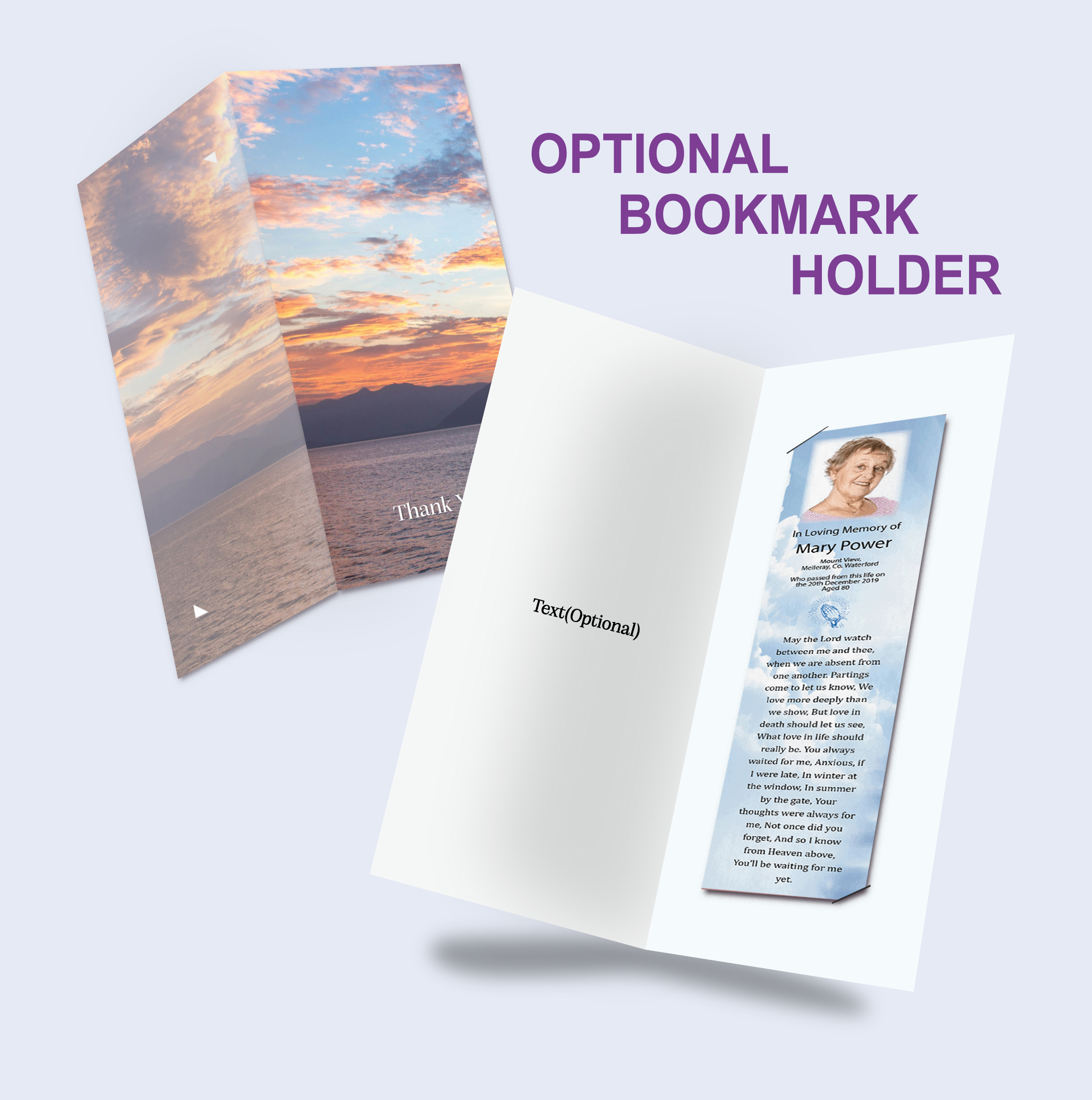 “A Personalised Memorial Bookmark is a popular touching keepsake to remember and pay tribute to a lost loved one. They are a great memory to give to your friends and family and for people who were unable to make the ceremony.”