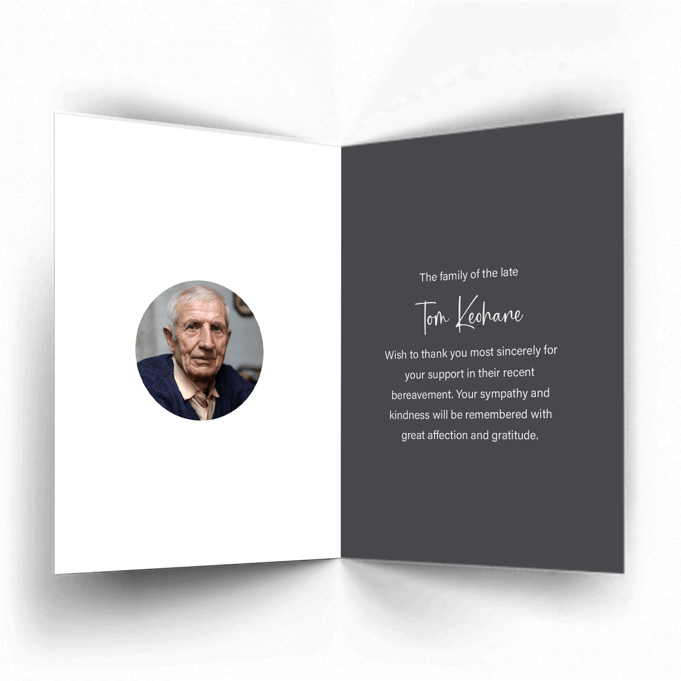 “A Personalised Memorial Acknowledgement Card or Thank you card is a touching way to express your gratitude and to acknowledge the importance of the help and support you received after your loss.”