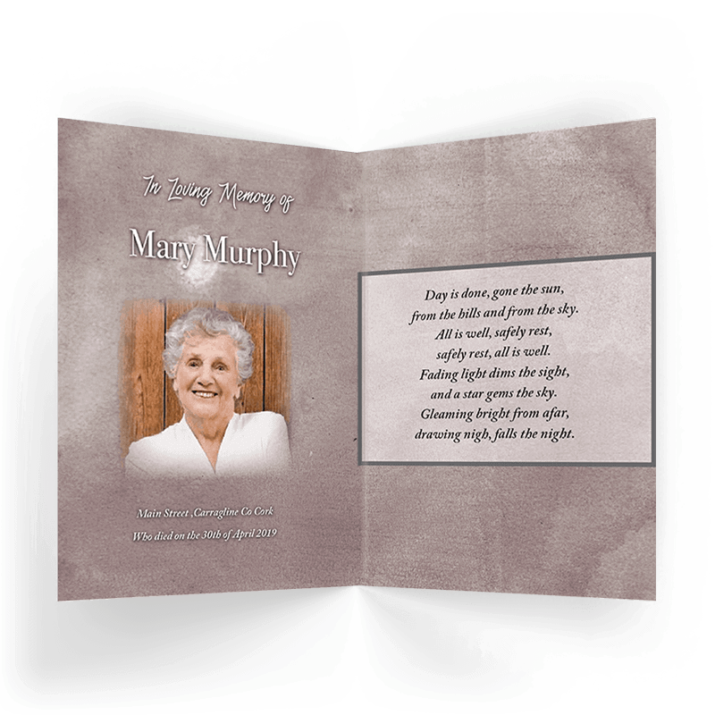“A Personalised Memorial Card is a popular touching keepsake to remember and pay tribute to a lost loved one. They are a great memory to give to your friends and family and for people who were unable to make the ceremony.”