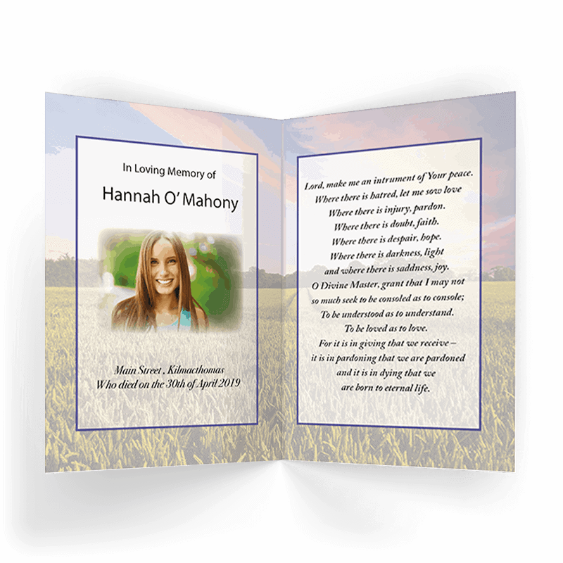 “A Personalised Memorial Card is a popular touching keepsake to remember and pay tribute to a lost loved one. They are a great memory to give to your friends and family and for people who were unable to make the ceremony.”