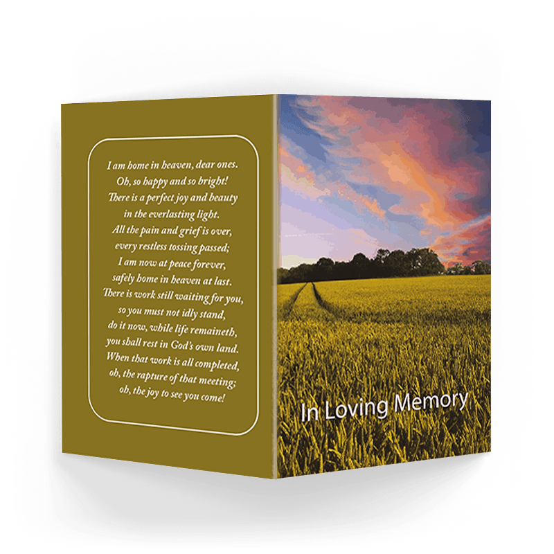 - Our memorial cards are finished to size 75mm x 105mm when folded.