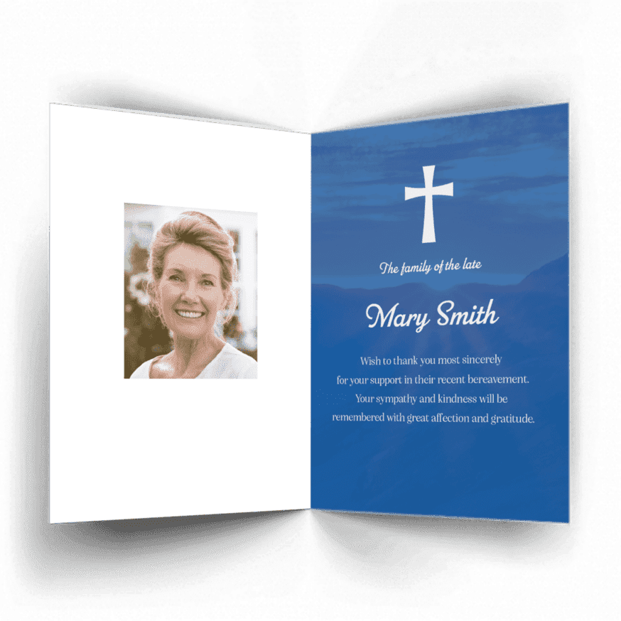 “A Personalised Memorial Acknowledgement Card or Thank you card is a touching way to express your gratitude and to acknowledge the importance of the help and support you received after your loss.”
