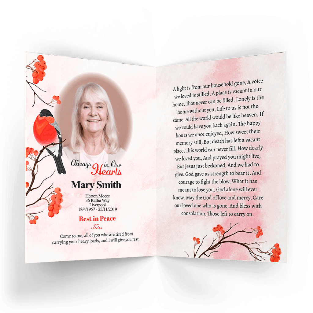 “A Personalised Memorial Card is a popular touching keepsake to remember and pay tribute to a lost loved one. They are a great memory to give to your friends and family and for people who were unable to make the ceremony.”