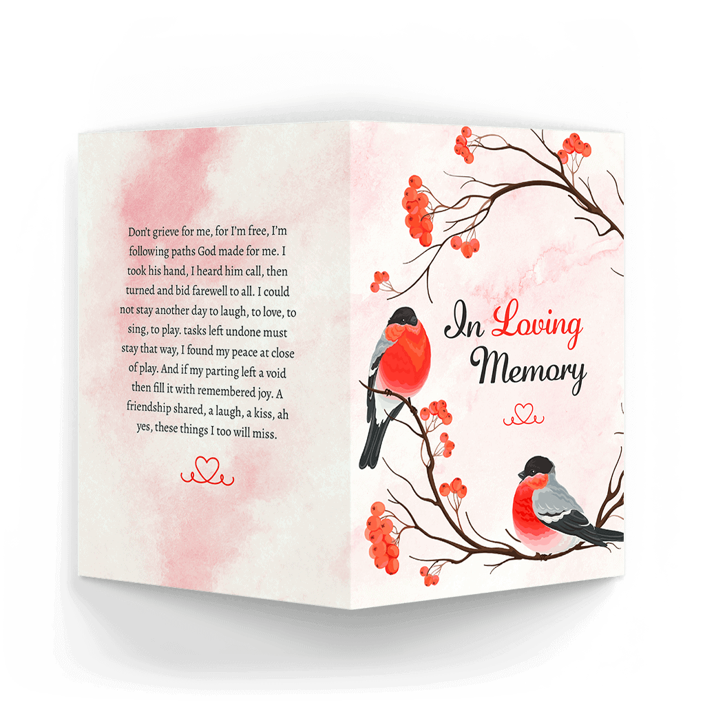 - Our memorial cards are finished to size 75mm x 105mm when folded.