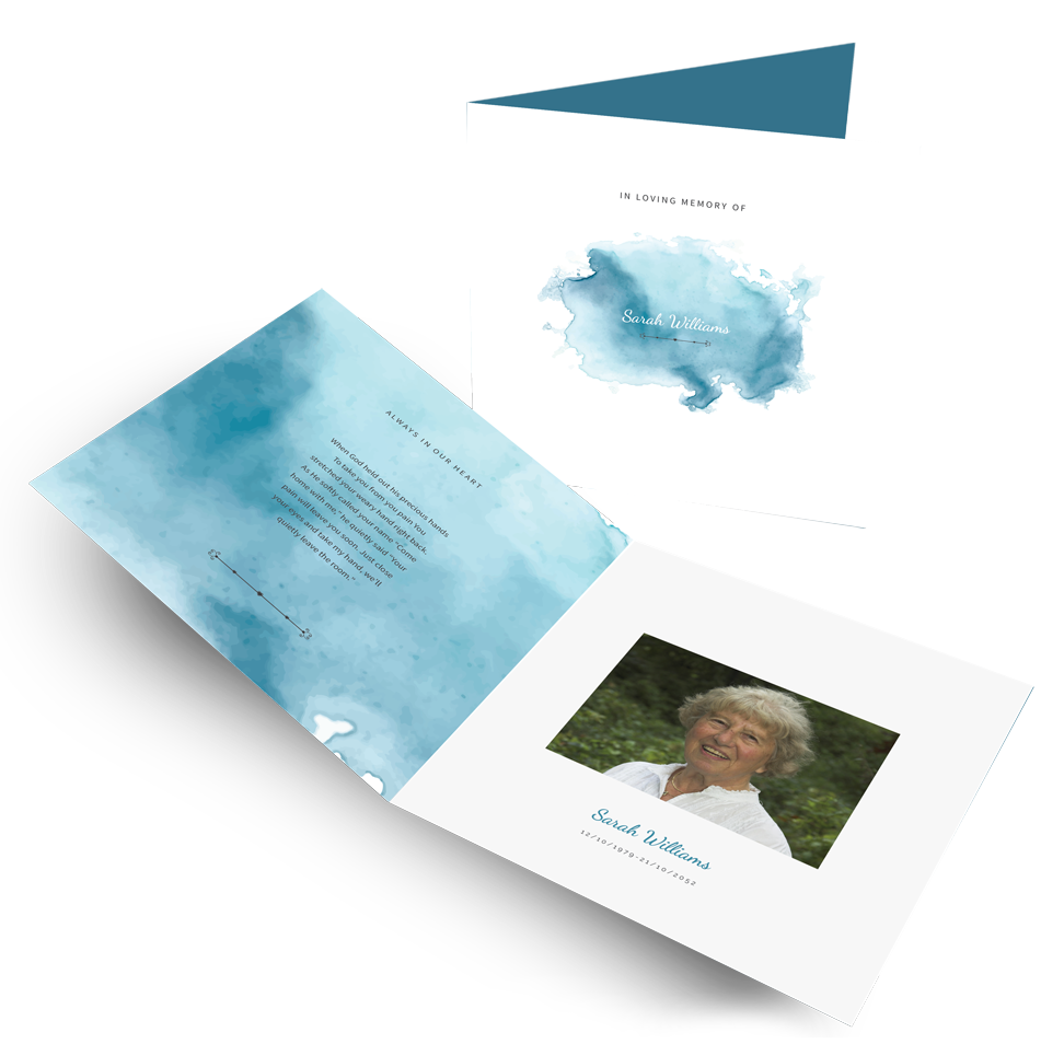 - Our Folded Memorial Acknowledgement cards are finished to size 140mm wide x 140mm high when folded (5.5 in x 5.5 in)