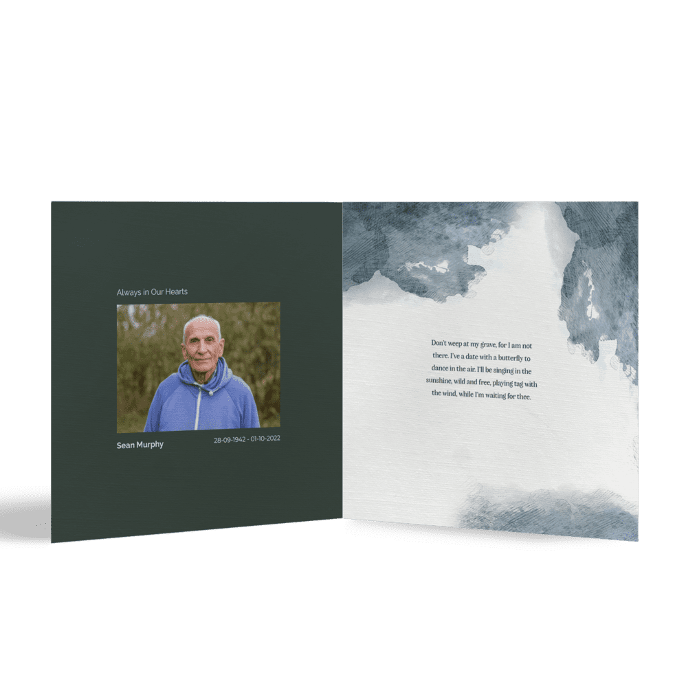“A Personalised Unique Memorial Acknowledgment Card or Thank You card is a popular touching keepsake to remember and pay tribute to a lost loved one. They are a great memory to give to your friends and family and for people who were unable to make the ceremony.”