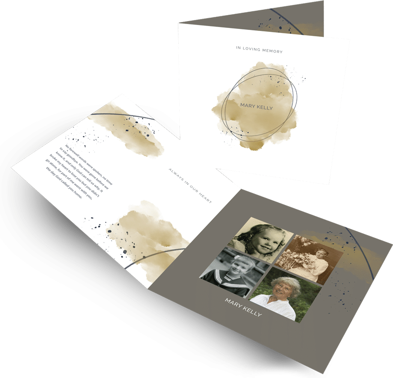 • Our Folded Unique Memorial cards are finished to size 140mm wide x 140mm high when folded