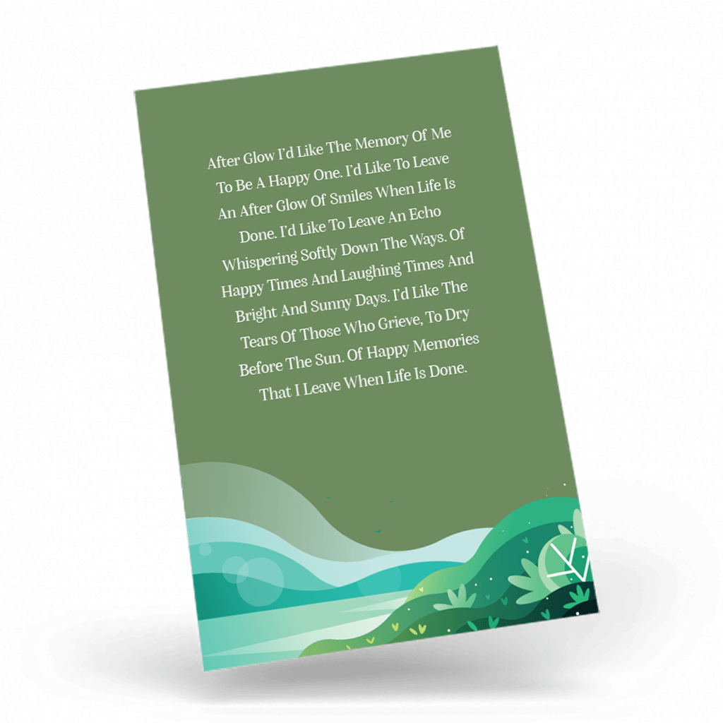- Our memorial wallet cards are finished to size 55mm x 85mm Tall.