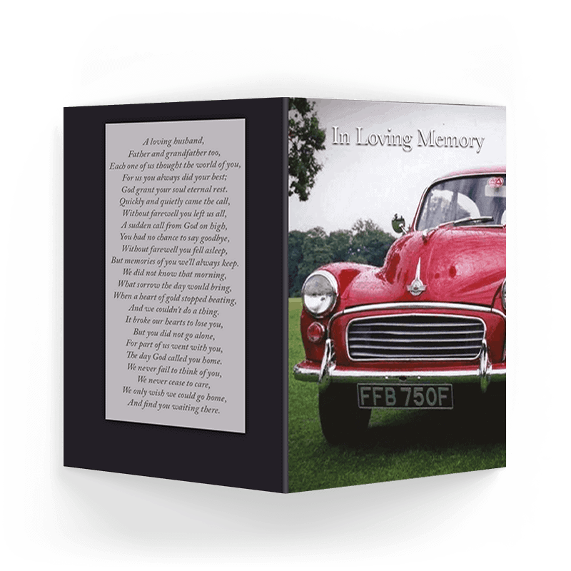 “A Personalised Memorial Card is a popular touching keepsake to remember and pay tribute to a lost loved one. They are a great memory to give to your friends and family and for people who were unable to make the ceremony.”