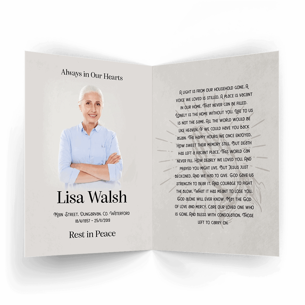 “A Personalised Memorial Card is a popular touching keepsake to remember and pay tribute to a lost loved one. They are a great memory to give to your friends and family and for people who were unable to make the ceremony.”