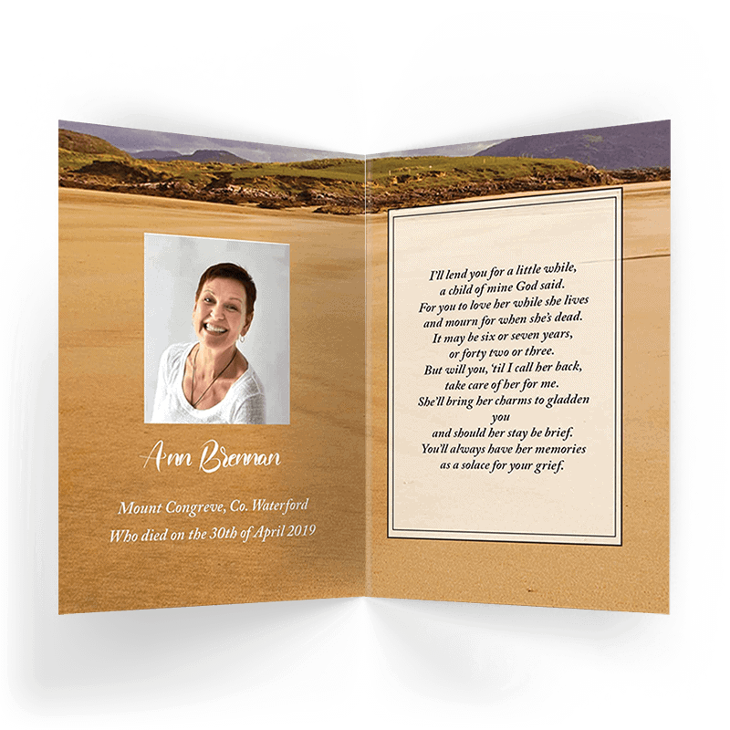 “A Personalised Memorial Card is a popular touching keepsake to remember and pay tribute to a lost loved one. They are a great memory to give to your friends and family and for people who were unable to make the ceremony.”