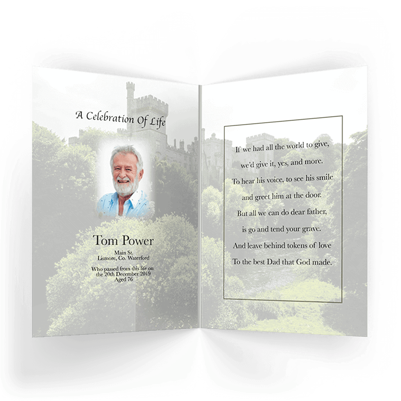 Our Beautiful county Waterford scenic memorial cards are Printed on the highest quality coated art board and finished with a high gloss laminate.