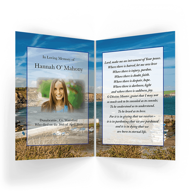 Our Beautiful county Waterford scenic memorial cards are Printed on the highest quality coated art board and finished with a high gloss laminate.