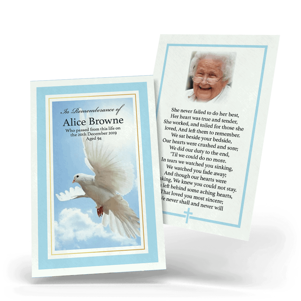 - Our memorial wallet cards are finished to size 55mm x 85mm Tall.