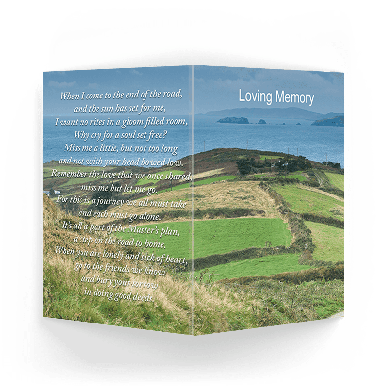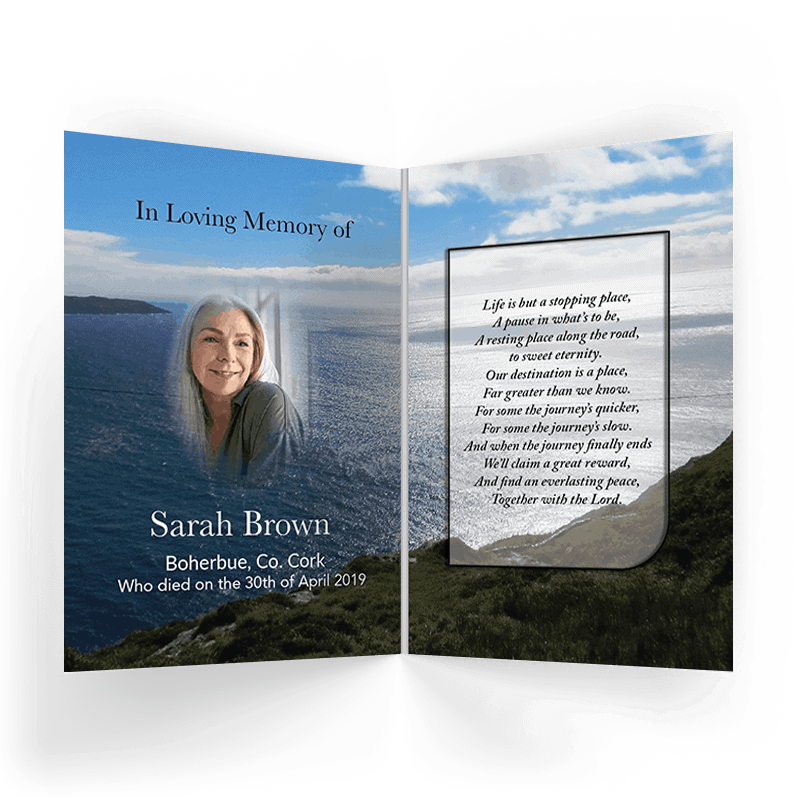 Our Beautiful West Cork scenic memorial cards are Printed on the highest quality coated art board and finished with a high gloss laminate.